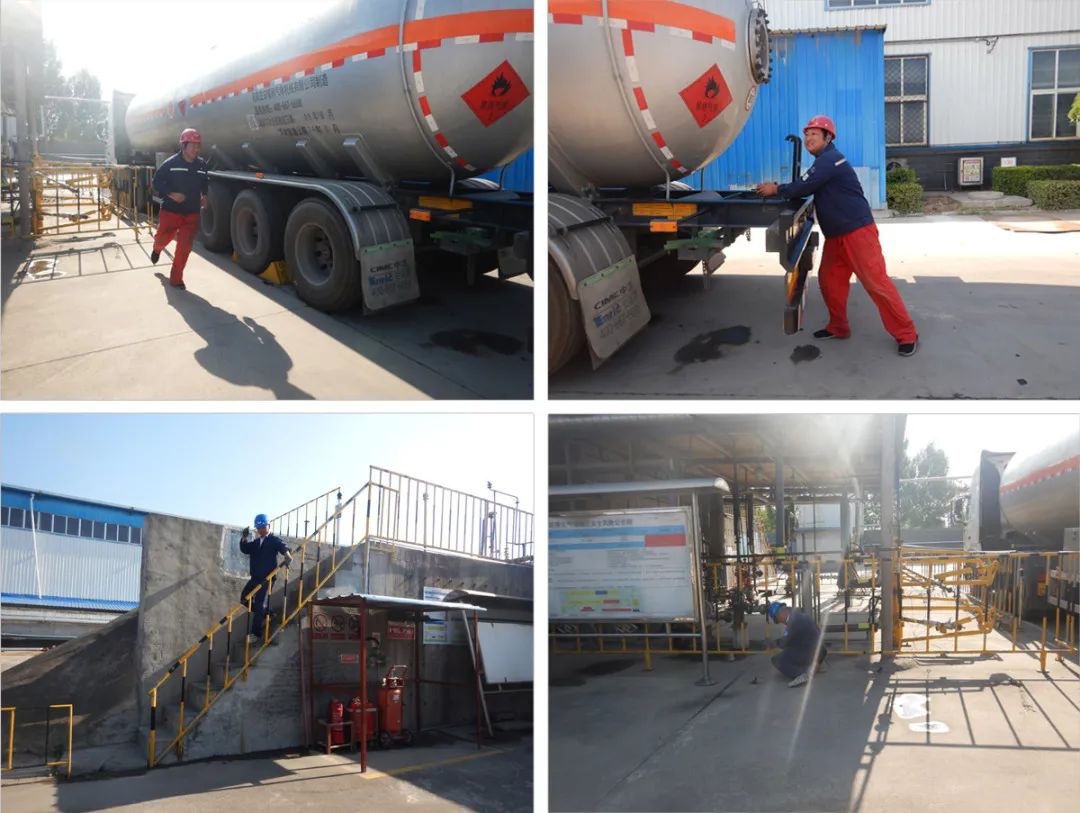 在二甲醚卸車過程中,操作工登上液化氣體儲罐平臺巡檢,此時,卸車位卸車鶴管脫落,大量二甲醚泄漏,司機及時拉起槽車后的緊急切斷拉桿后緊急撤離,操作工發(fā)現(xiàn)泄漏后強行關(guān)閉卸車鶴管閥門時吸入大量二甲醚氣體導致昏迷。以此為演練場景,開展綜合應(yīng)急救援預案演練。